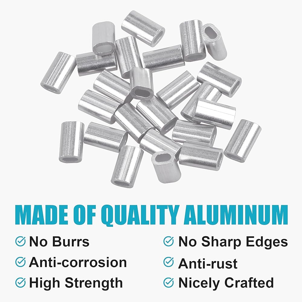 ✅ PREMIUM MATERIAL: The single crimp sleeves are made of quality aluminum with great corrosion resistance and high strength, nicely crafted without burrs and sharp edges.