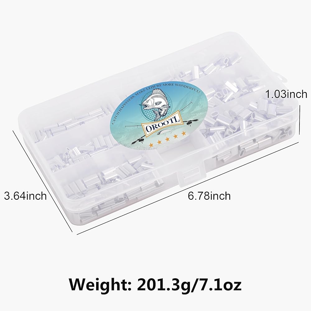 ✅ PRACTICAL: 6 sizes together in one clear box, enough in quantity, good in quality. Oval shaped fishing crimp sleeves provide a permanent crimp without compromising line strength.