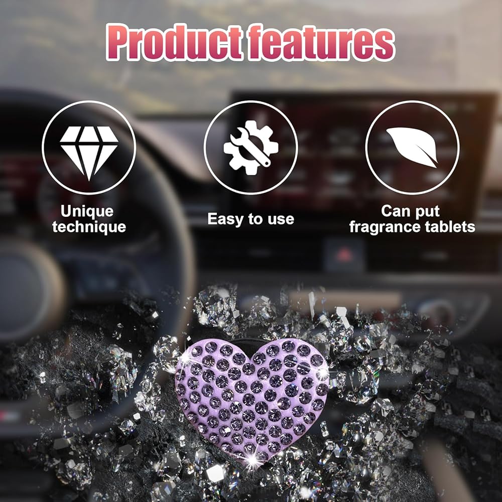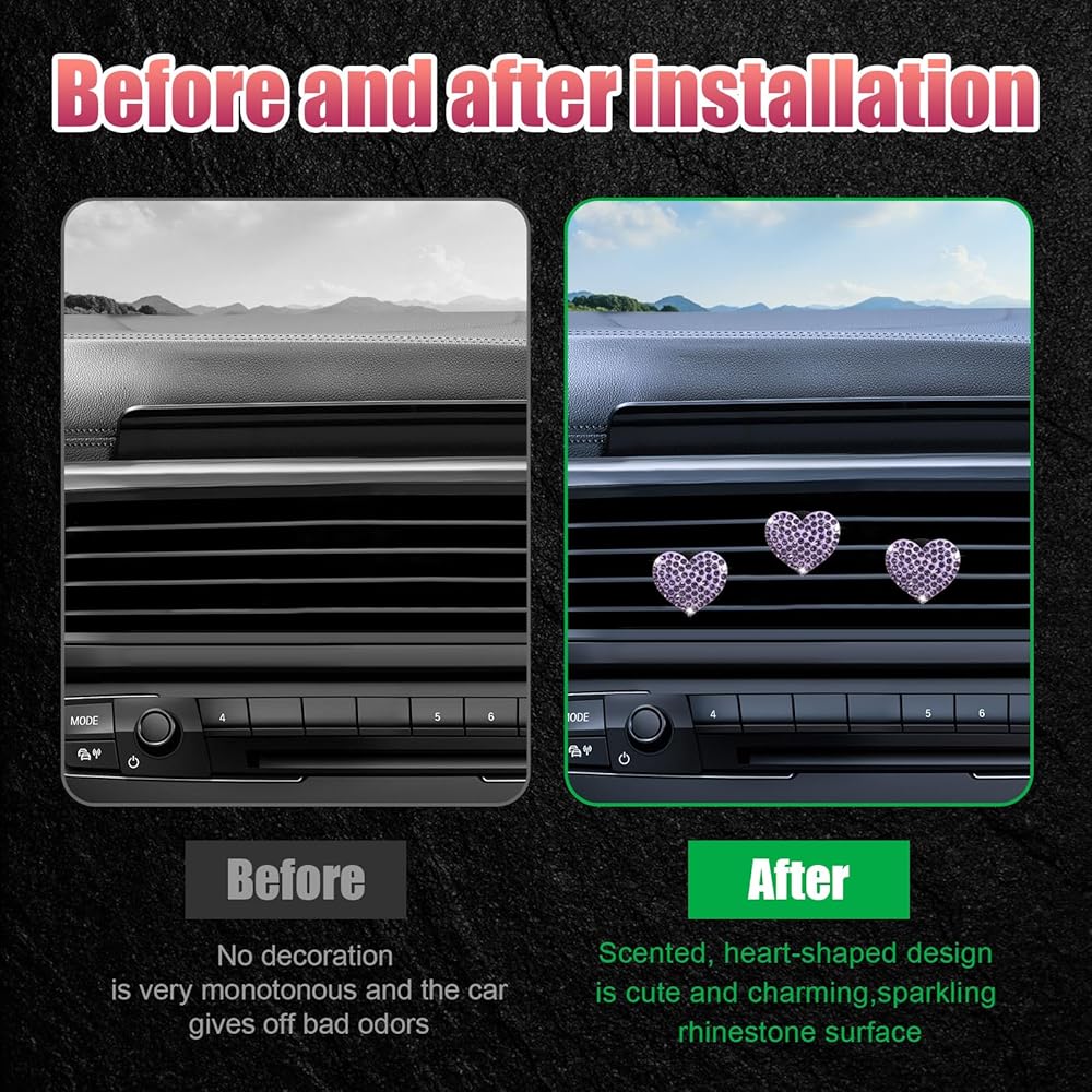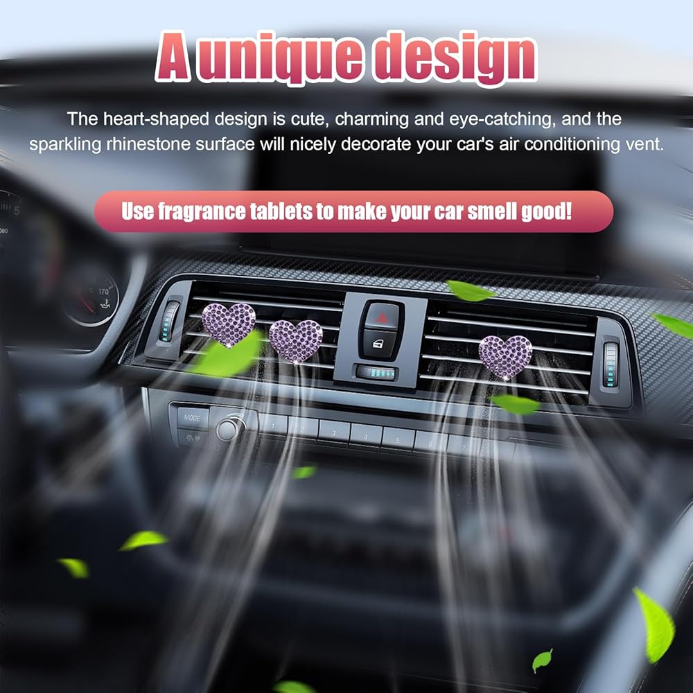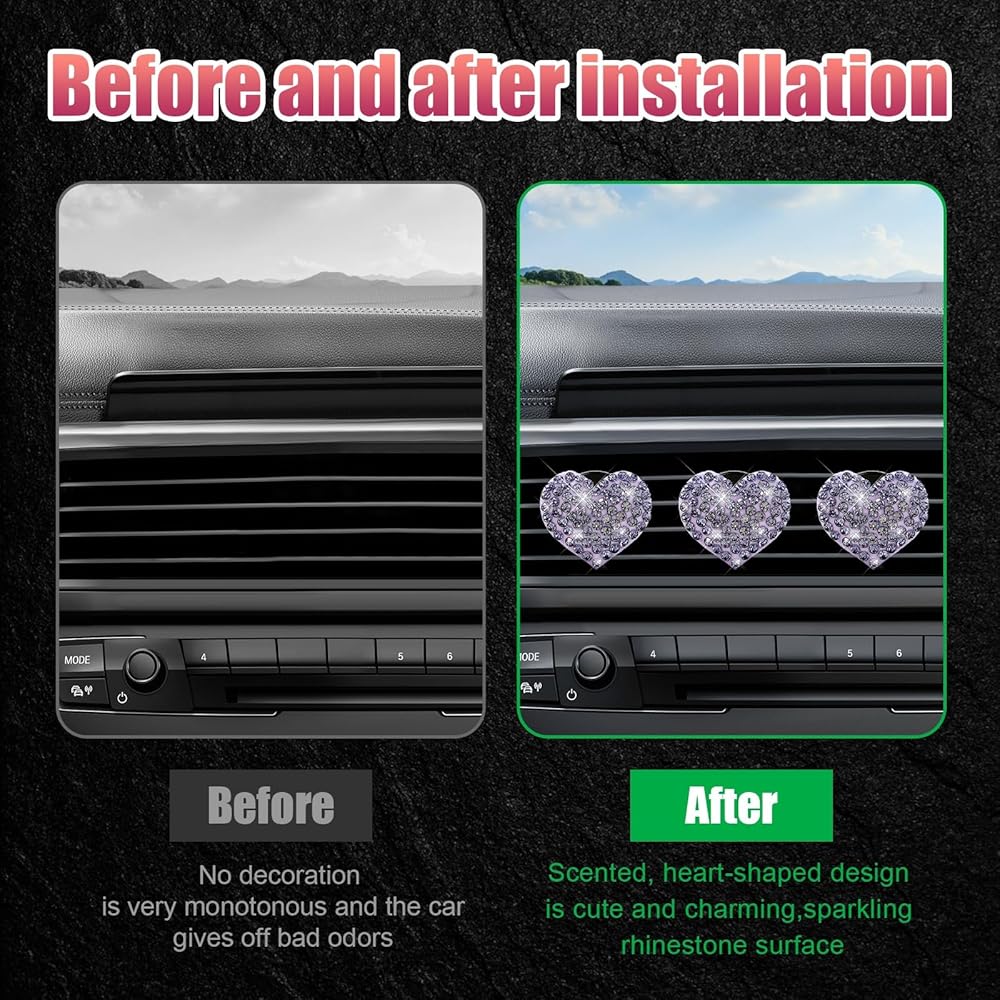 【Sparkly Decoration】: Designed with heart shape and bling crystal rhinestones, this air vent clip is definitely a great item to decorate your car interior. The sparkling crystal rhinestones reflect brilliant light in the sunlight, adding a touch of elegance and beauty to your car's air vents, reflecting your temperament and personality.