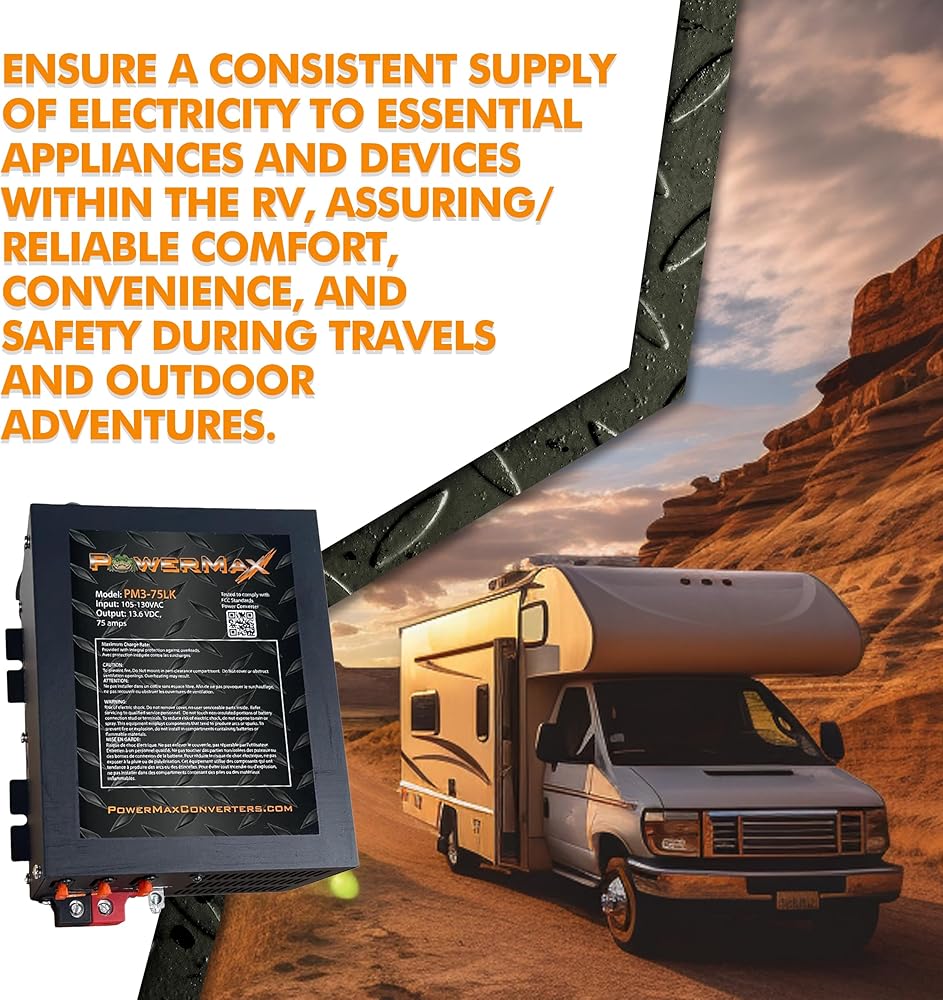 🔋 HIGH QUALITY PRODUCT- This PowerMax Brand New 60 AMP 12Vdc Charger Power Supply Converter can boasts a 60-amp power capacity and it's a three-stage converter and charger that not only supplies power for your DC electronics, but it also charges your RV battery.