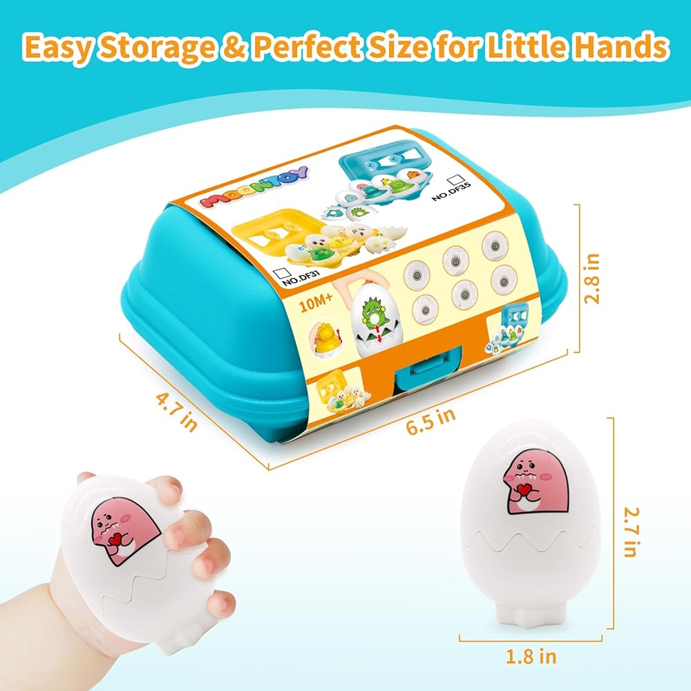 🎁High Quality & Perfect Gift - We always focus on higher quality and safer montessori toys for young kids. Our eggs are made of non-toxic BPA-free sturdy plastic. Easy to clean, which makes sure your kids are 100% safe from harmful chemicals. Polished smooth edges, Burr-free for children to play safely and securely. MOONTOY toddler toys egg is the best birthday /Christmas/Easter/Halloween/Thanksgiving gift for 1 2 3 4 5 6 year old boys and girls.