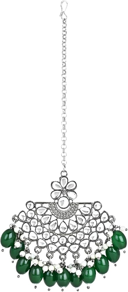 🔹 OXIDISED FINISH: The earrings and maang tikka have a special finish that gives them an antique look. This finish enhances their style and gives them a unique charm.