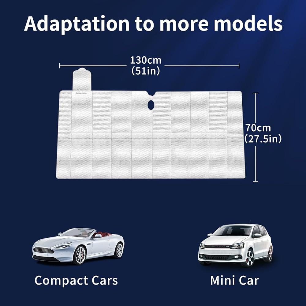 Universal Fit for All Vehicles: Our Car Windshield Sun Shade fits a wide range of vehicle types, from sedans and SUVs to trucks and minivans. The high compatibility ensures that no matter what you drive, you can keep your interior cool and protected. It's particularly beneficial during hot summer days, preventing your seats from becoming unbearably hot. This sunshade is an ideal accessory for any vehicle, ensuring maximum protection from the sun's damaging effects.