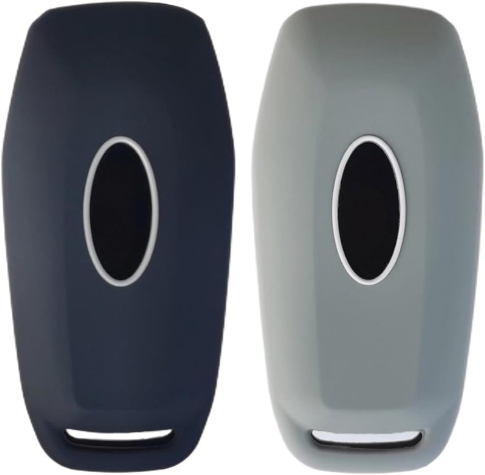 Silicone Key Fob Cover Remote Keyless Case Protector Compatible with Ford Edge Explorer F-150 F-250 Super Duty F-350 Super Duty Fusion Mustang Lincoln MKX 2013-2018 - 5 Buttons (Black + Grey)
