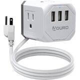 5ft extension heavy-duty cord (15A, 1875W, 125VAC) is ETL listed in the US and Canada, Compact size plug-in USB outlet plug adapter splitter; ideal for smartphones, tablets, laptops, and other electronic accessories