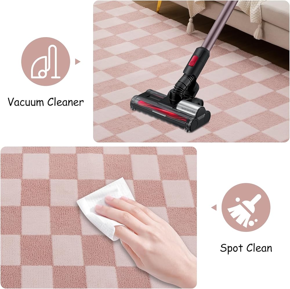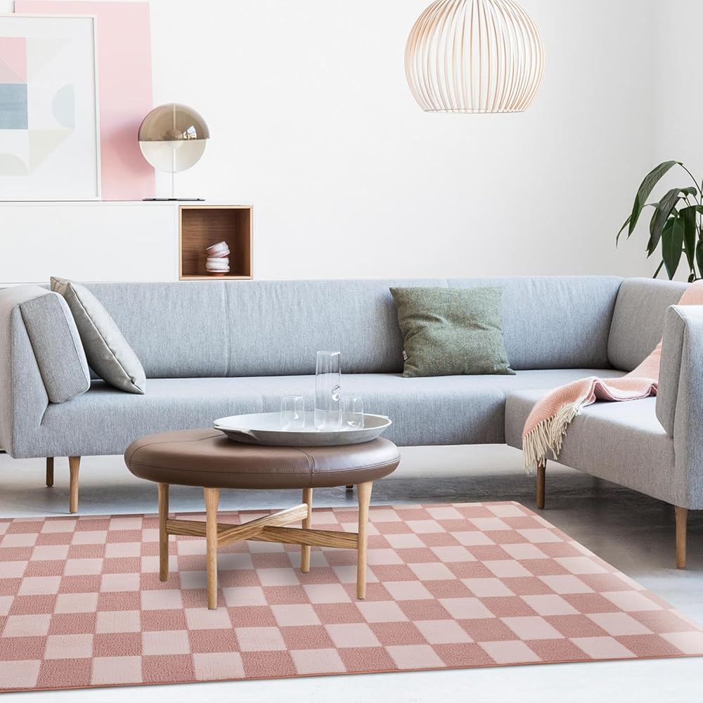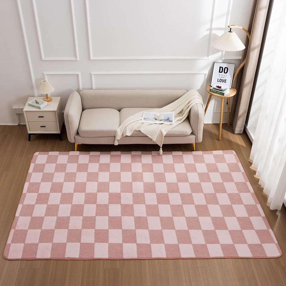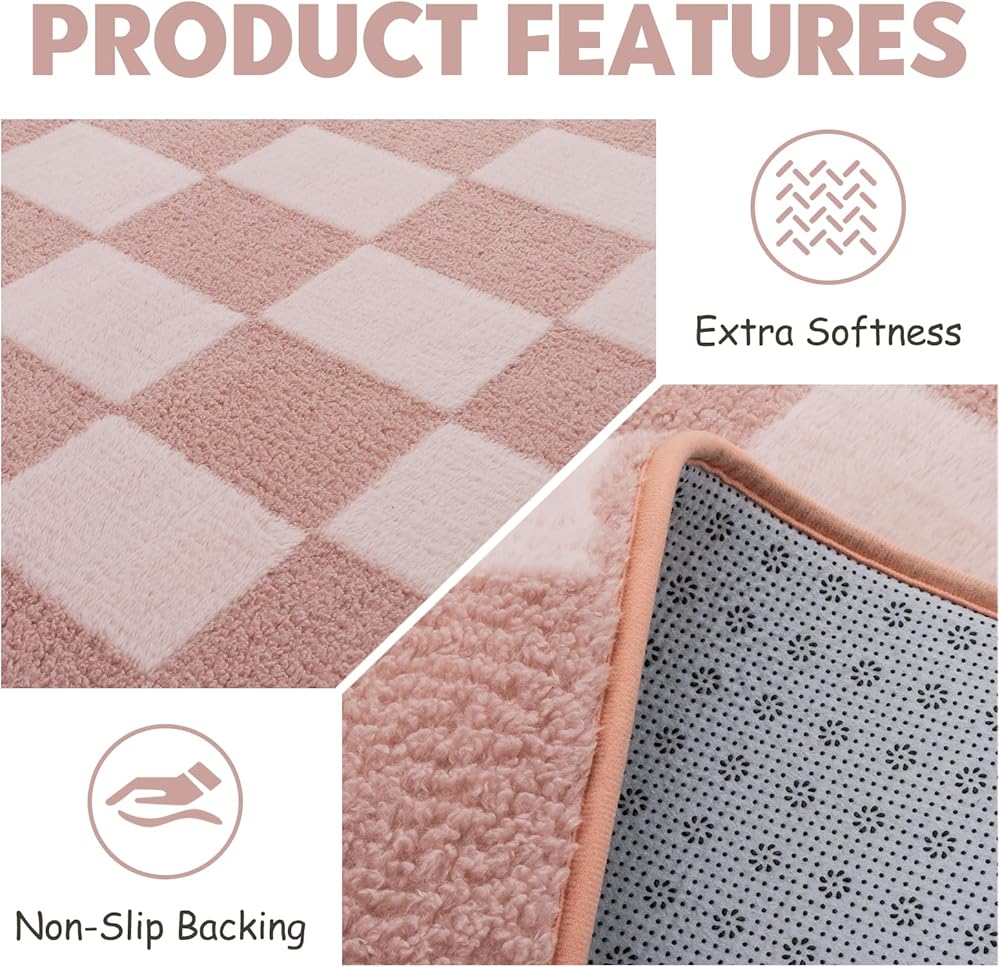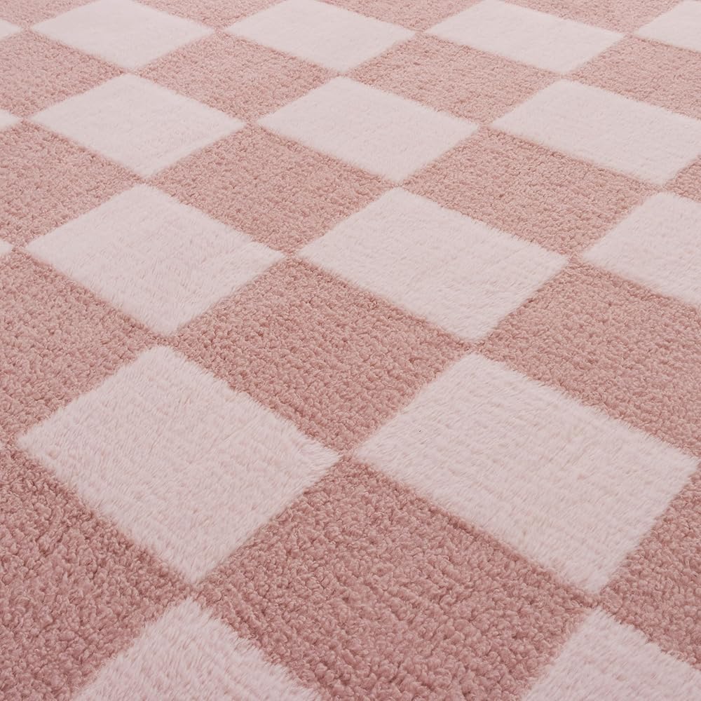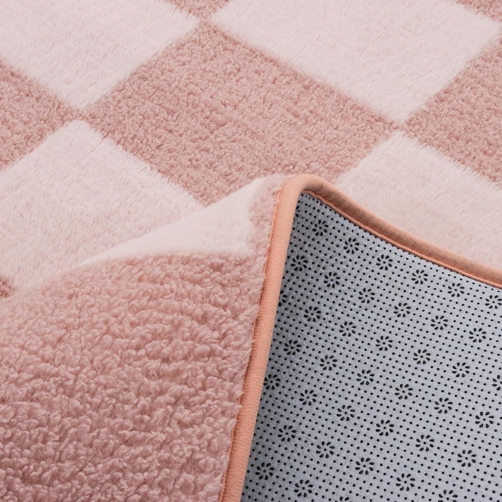 Btargot 6×4ft Light Pink Checkered Area Rug for Living Room, Princess Prince Castle Modern Abstract Checkerboard Throw Rugs Anti-Skid Fluffy Plush Carpet for Kids Boys Girls Home Nursery Decorative