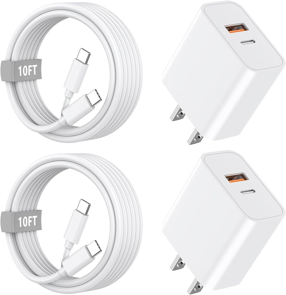 Wamaxlink 2 Pack 20W Dual Port iPhone Fast Charger Block with 10FT Long USB-C to USB-C Cable Compatible with New iPhone 15, iPad Pro Series.