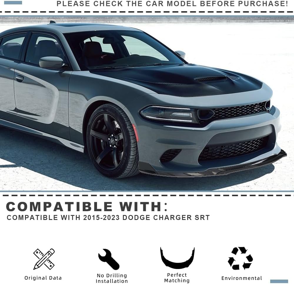【Compatible Fitment】This front lip is compatible with Compatible With 2015-2023 Dodge Charger SRT Only. Please confirm that this spoiler is suitable for your vehicle before purchasing.
