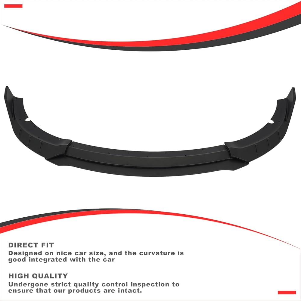 【Superior Quality】Manufactured from automotive grade ABS, light-weight, superior durability, impact resistance and no fading.The front bumper lip spoiler will make the car look prettier and have more personality. Instantly provides your car with a more aggressive front end and significantly improved sporty appearance.