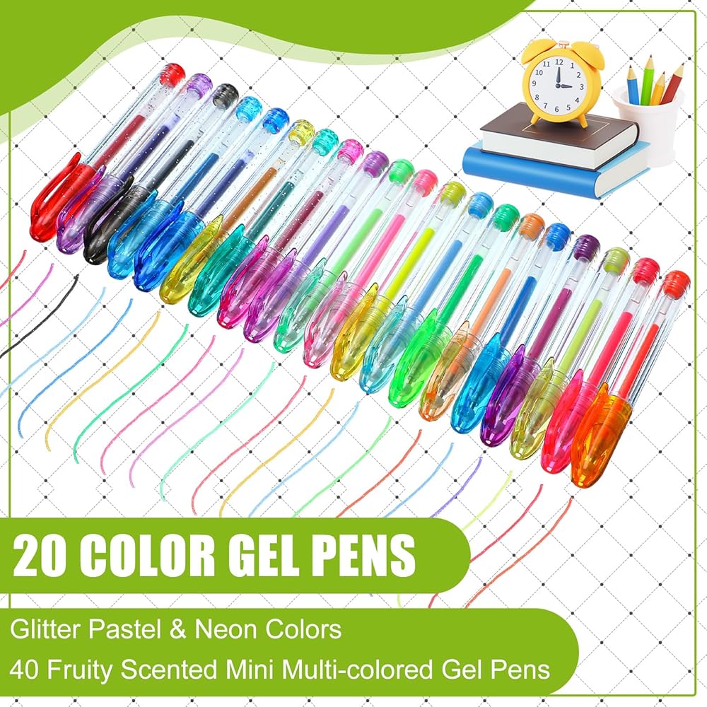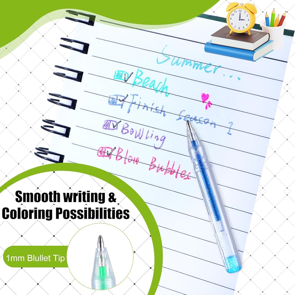 These glitter gel pens can give a unique sensory experience with pastel scents. The subtle aroma enhances the enjoyment of use, adding an extra layer of fun to your writing or drawing.