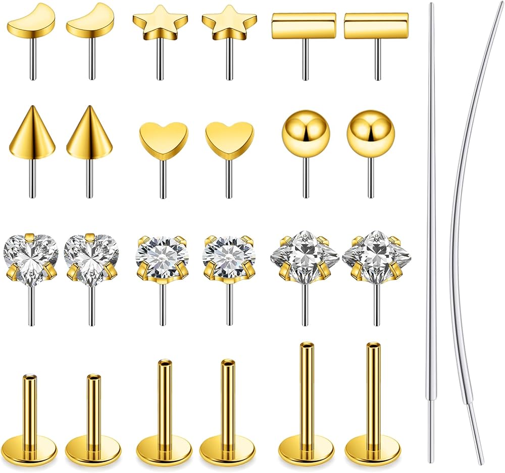 [Includes]:You will receive 9 pairs push in replacement piercing tops, 3 pairs different length nose ring posts and 2pcs Earring piercing taper insertion pins.