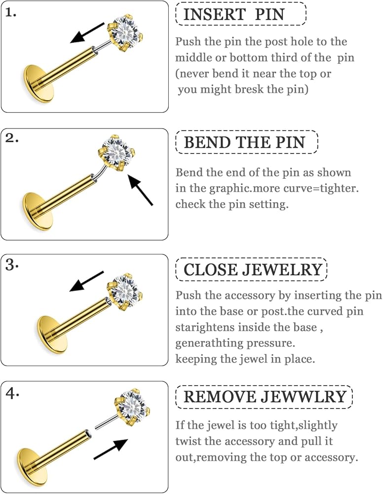[Using Instructions]: Used as nose ring studs piercing jewelry,flat back stud earrings,cartilage earrings, tragus piercing jewelry, helix earrings, conch piercing jewelry, lip rings, labret jewelry, medusa piercing jewelry, monroe piercing jewelry., Come with One Velvet Bag. It's Good Daily Life Wearing and Also Can Serve as Choice for Birthday, Christmas Day, Anniversary Day, Valentine's Day and more.