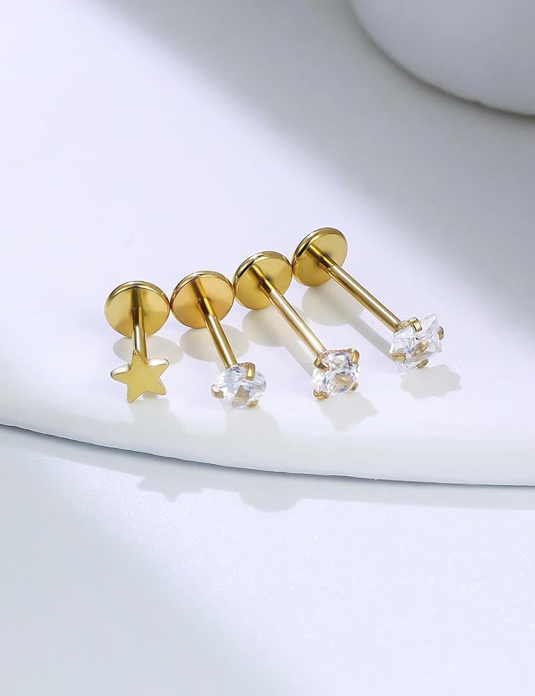 16G 18G 20G Threadless Flat Back Nose Ring Studs Earrings 316L Stainless Surgical Steel Tragus Helix Cartilage Earrings Medusa Labret Lip Rings Piercing Jewelry For Women Men Bar 6mm-8mm
