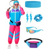 What You Receive: the 80s outfit for hip hop party includes 1 piece of pullover jacket top, 1 pair of pants, 1 piece of fanny pack, 1 pair of glasses, 1 pair of earrings and other accessories, the thoughtful set will satisfy your need for 80s party costume or Halloween themed