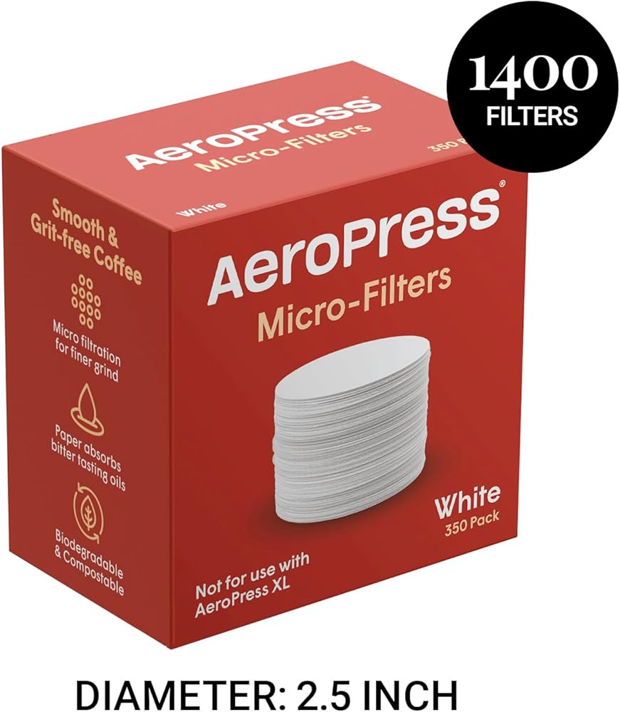 AeroPress Coffee Maker White Paper Micro-Filters, Compostable Coffee Filters Made From White, Chlorine-Free Paper, Fits Standard Size AeroPress Manual Coffee Makers, 4 Pack (1400 Count)