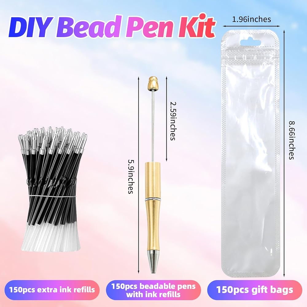 Extensive Beadable Pens Kit: With 150 beaded pens bulk, 150 ink refills and 150 pen bags. The inks are black. There are 40 different colors of the pen shell, very suitable for daily use and sharing, combining quantity with quality for exceptional value, serviceable beaded pen kit that last long without damaging documents.