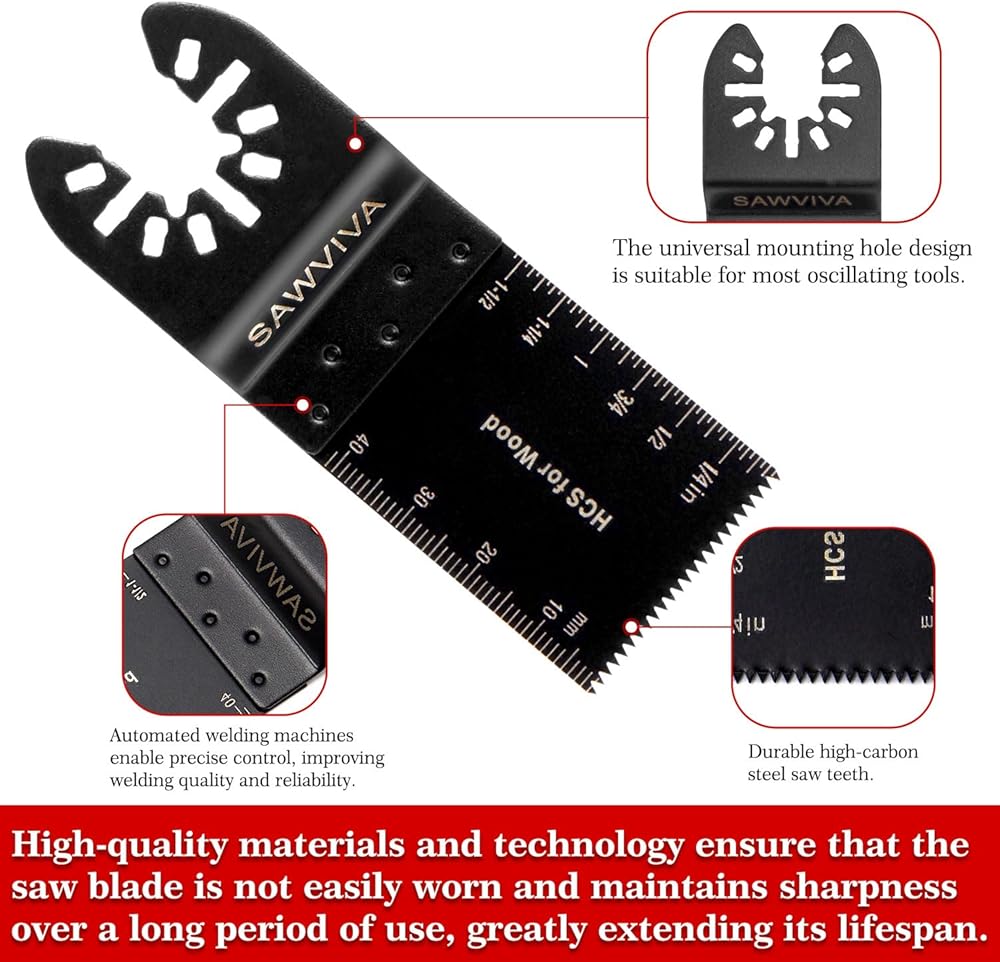 Universal Fit: SAWVIVA 100pcs Oscillating Multitool Blades feature a universal fit, compatible with most oscillating tools available in the market. This compatibility ensures hassle-free installation and a secure fit, enabling seamless operation and productivity.