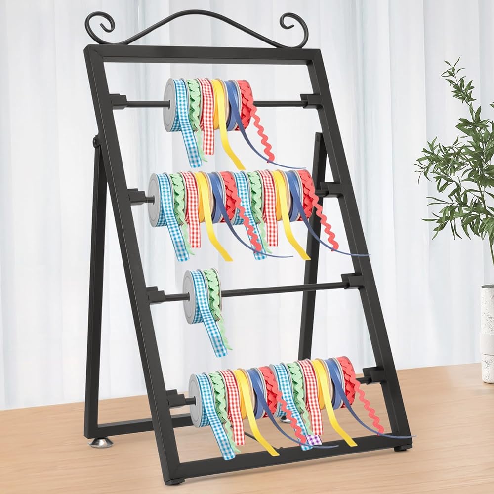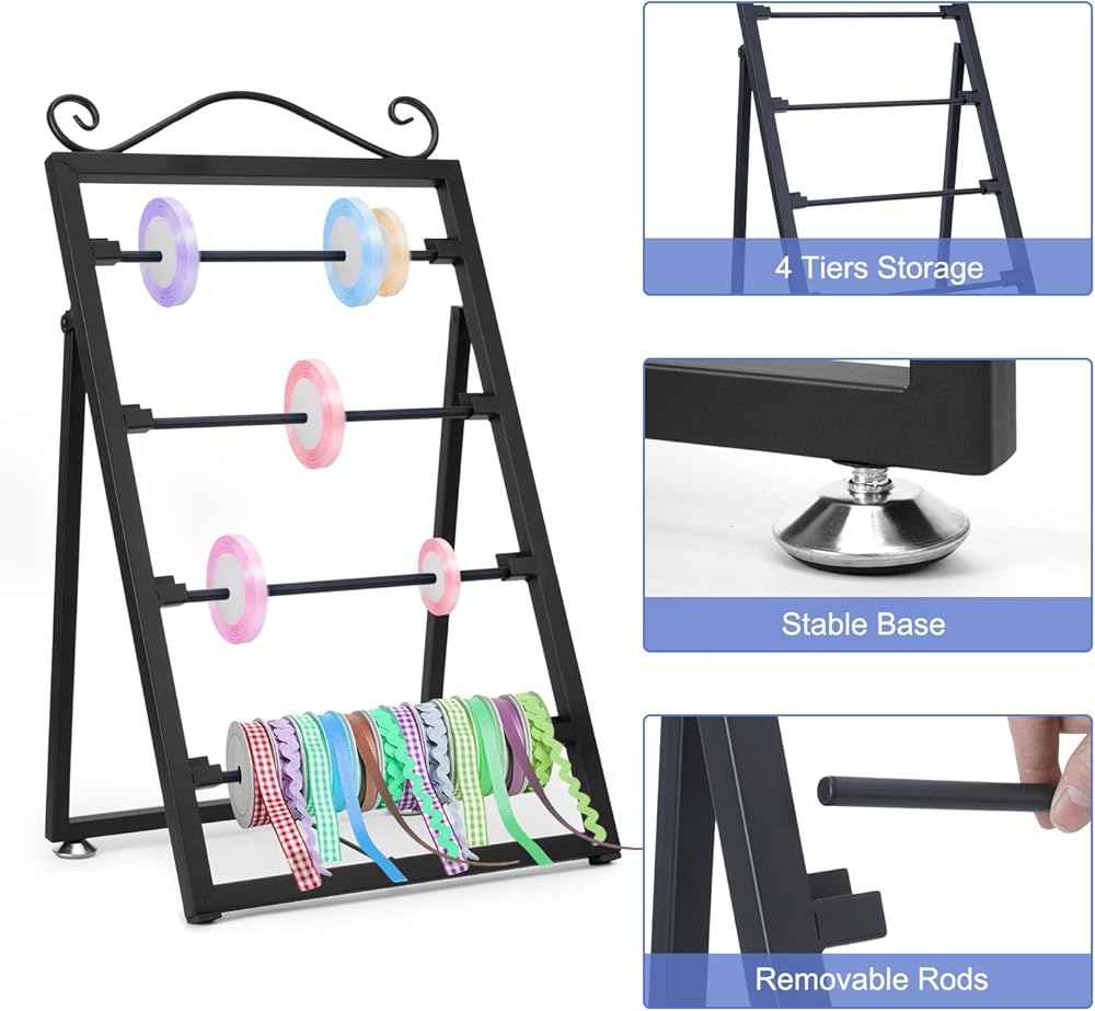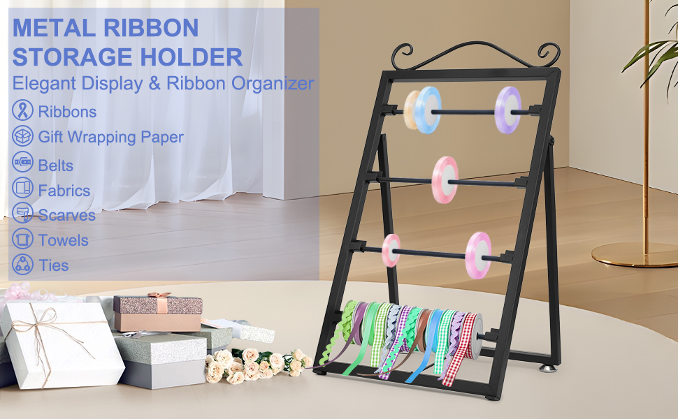 Metal Material:Our ribbon storage organizer is made of thickened and strengthened metal,with baking paint coating.Rugged,waterproof,light weight, strong load-bearing capacity,easy to carry, stable.This modern style ribbon storage organizer will be your good helper.