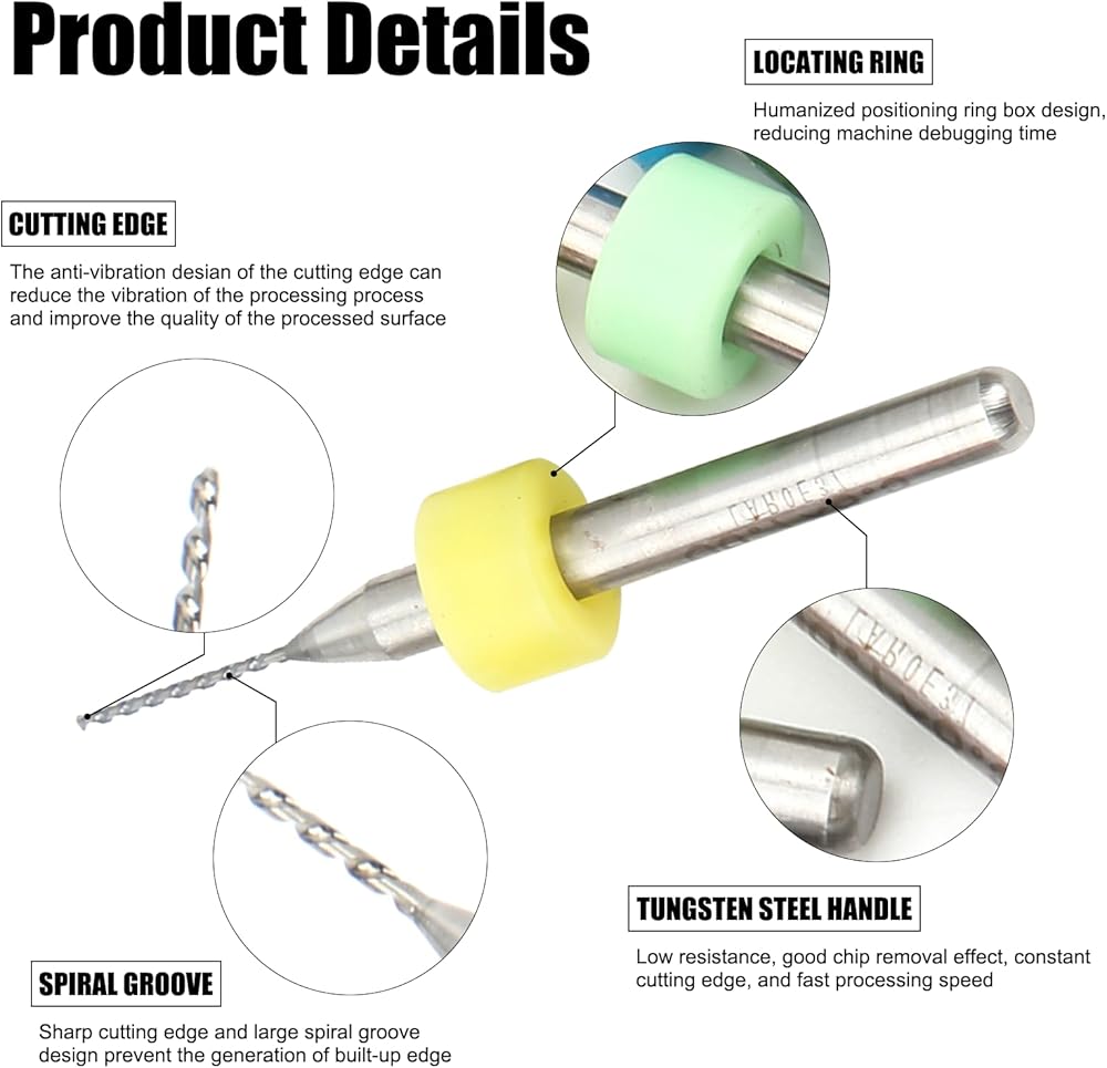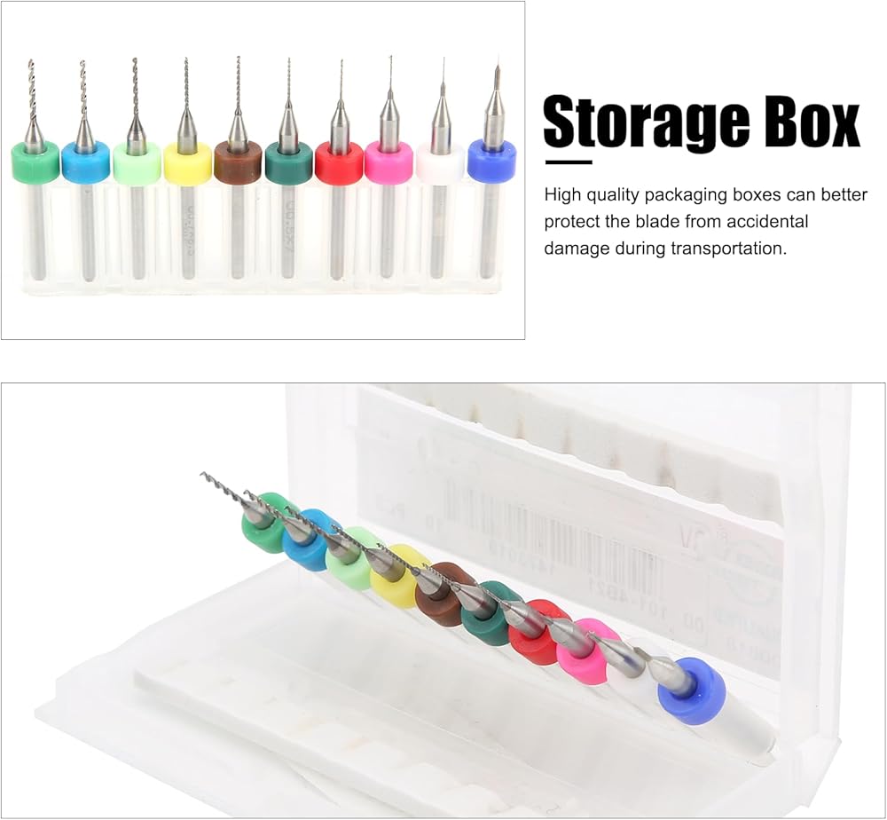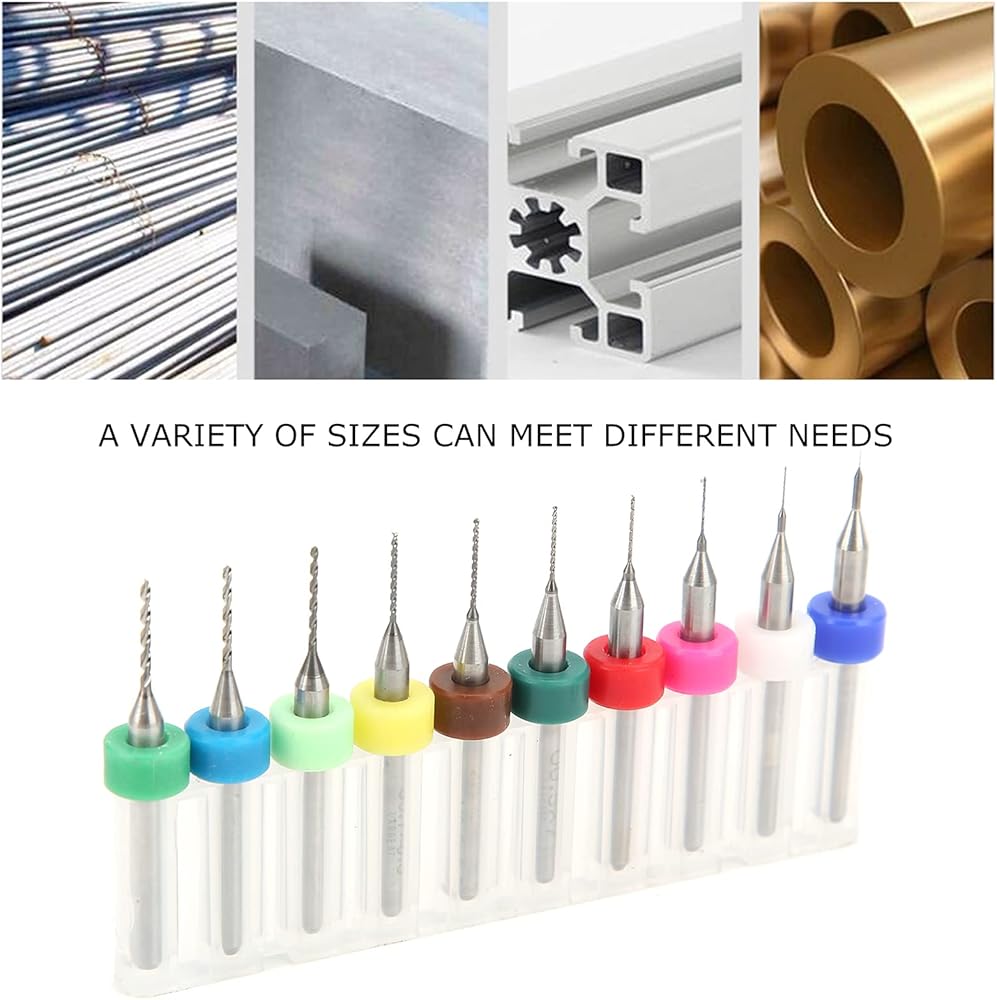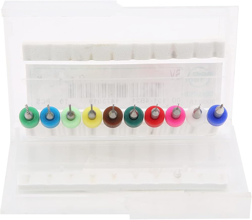 Drill diameters in 10 different sizes: 0.1mm, 0.2mm, 0.3mm, 0.4mm, 0.5mm, 0.6mm, 0.7mm, 0.8mm, 0.9mm, 1.0mm.