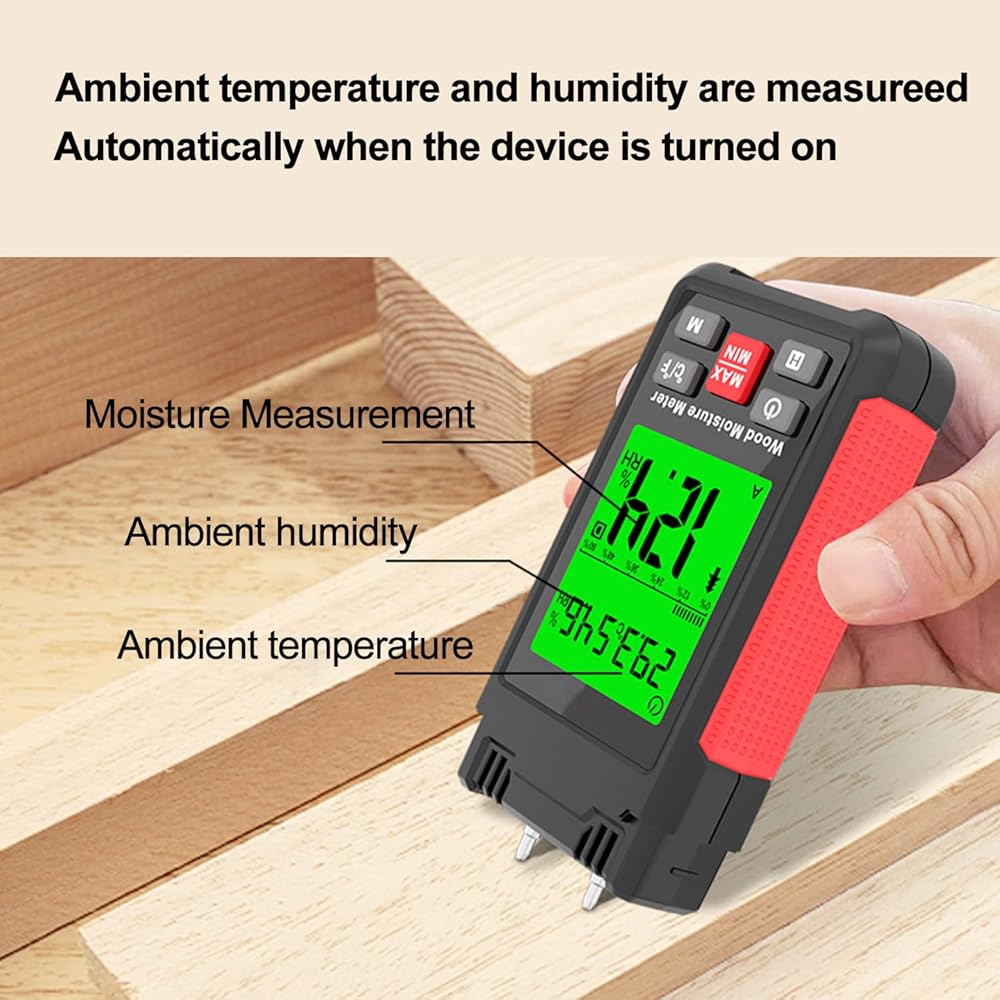【7 Measurement Modes, Accurate Measures】It has built-in characteristic parameters of 7 different kinds of wood and building materials. This wood moisture meter can provide a basis for the need for further drying. Support maximum and minimum measurement functions, ambient temperature & ambient humidity measurement. ℃/℉ unit switchable, convenient to use. The measured data will be shown clearly on the large digital LCD display screen. Automatic Power-off in 10 minutes without operation.