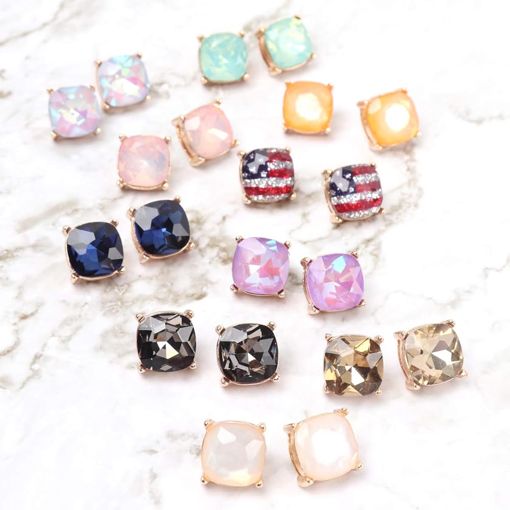 ✦PRODUCT DETAILS✦ Full of sparkling glitter flurries, these designer inspired earrings will sure have you shining all day long! Polished epoxy jewels adding just the right amount of subtle shine. MATERIAL: Base Metal, Glass. MEASUREMENTS: Approx. 0.5" Length, 0.5" Width. ♥CARE INSTRUCTIONS: Limit exposure to water, perfume or body cream to extend the life of your jewelry.♥