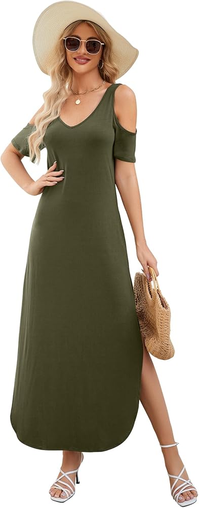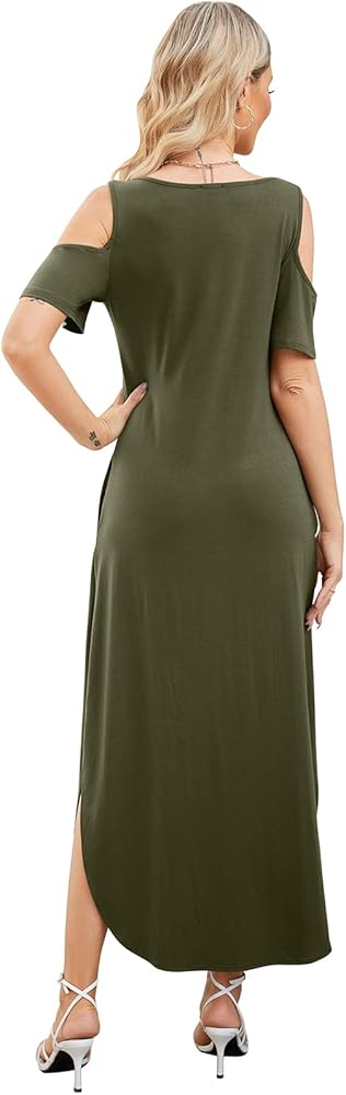 Match- cold shoulder maxi dress is a versatile women dress in your wardrobe. nice to dress up with heels or your favorite bohemian earrings and long necklace, May be flattering with a simple belt and jacket, It'll be great for summer and spring..
