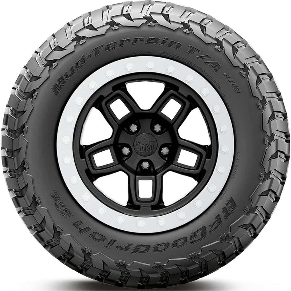 Mud-Terrain T/A KM3 is "must-have" equipment for the serious off-road enthusiast when conditions require extreme traction and toughness. Made to Mud: 5% Better Mud Traction[1] Built to Climb: 8% Better Rock Traction[2] Created to Conquer: 27% Tougher Sidewalls[3] [1]Based on internal mud traction testing vs. Mud-Terrain T/A KM2 tire in size LT265/70R17 using a 2014 Jeep Wrangler Rubicon. Actual results may vary. [2]Based on dry rock traction testing vs. Mud-Terrain T/A KM2 tire in size LT265/70R17 using a 2014 Jeep Wrangler Rubicon. Actual results may vary. [3]Based on internal sidewall puncture testing vs. Mud-Terrain T/A KM2 tire in size LT265/70R17. Actual results may vary.