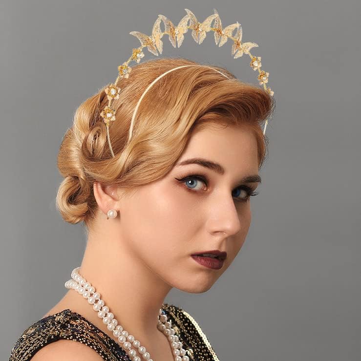 Butterfly Halo Crown is made by durable alloy,delicate flower,pearl and leaf,which can be firmly fixed on the head.