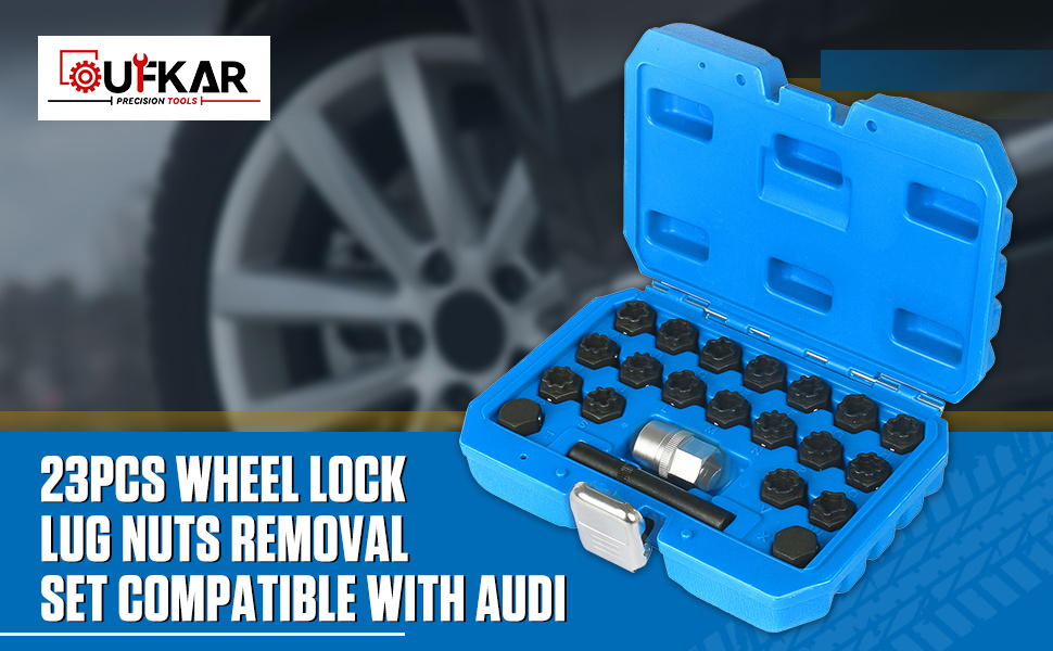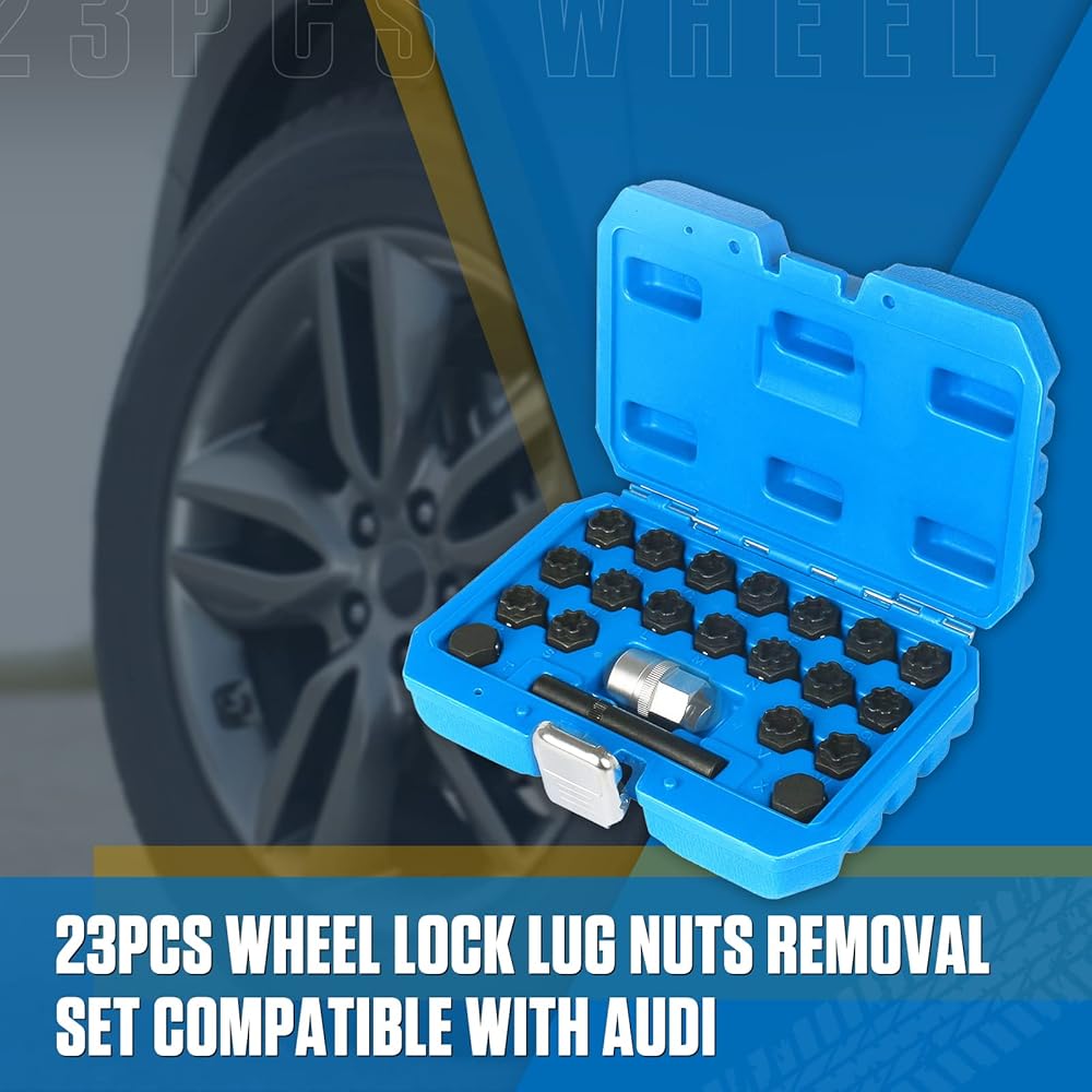 مجموعة إزالة صواميل أقفال العجلات 22 قطعة متوافقة مع سلسلة أودي، مجموعة إزالة أقفال العجلات مع محول، مجموعة مقابس مفاتيح إزالة صواميل أقفال عجلات السيارات
