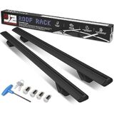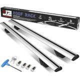 UNIVERSAL CROSSBARS - 55" overwall width, approximately 4" height added when installed, can withstand 90kg(198lbs) of weight; For use with raised roof rails with angled edges only. Does not fit roof rails flush to vehicle body or tubular rails.