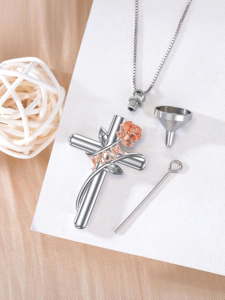 1X Rose cross urn Necklace