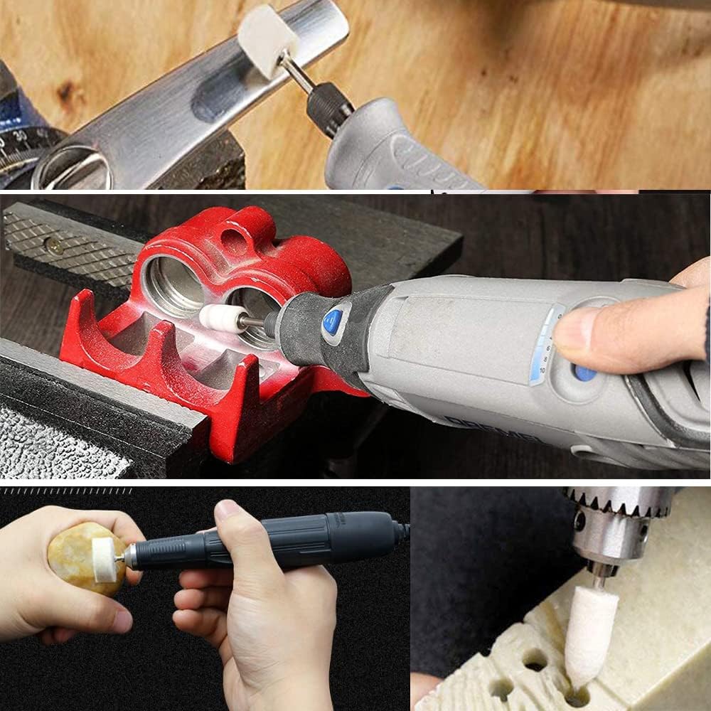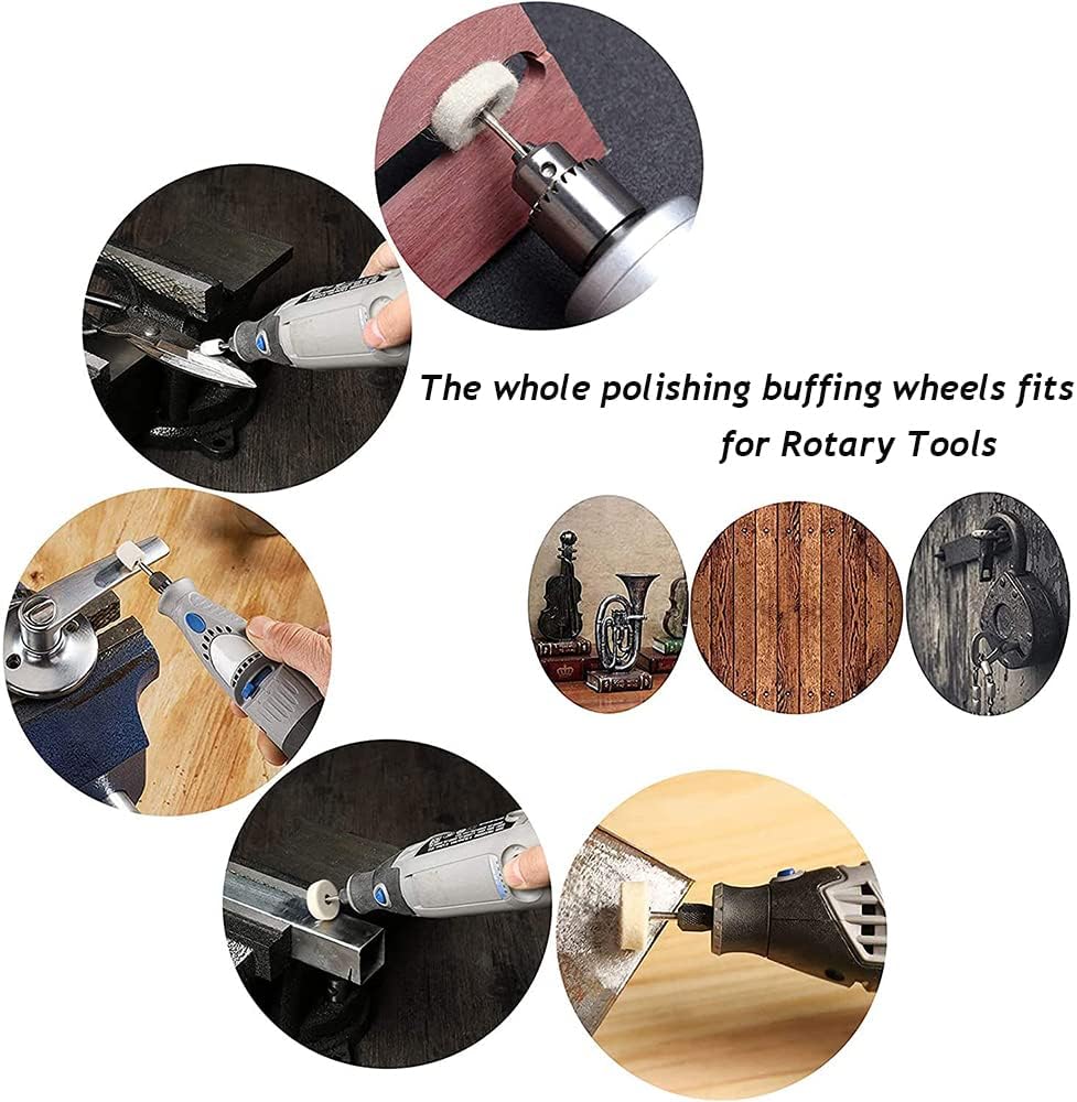 SMALL POLISHING TOOLS SAVING YOU TONS OF HAND WORK - With a quality item-well made-easy change wool felt polishing bits and an excellent rpm, You can do quite a few things. The whole polishing wheels fit well on Dremel rotary tools, electric drills or grinders. When you can polish something down to bare metal and then screw in a few seconds. Ultra-convenient to use.