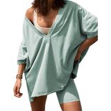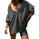 • بدلة رياضية صيفية مكونة من قطعتين للسيدات، تيشيرتات فضفاضة، شورت كاجوال لراكبي الدراجات النارية
