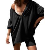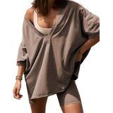 • البلوزات: قمصان فضفاضة للسيدات، رقبة عميقة على شكل حرف V، قمصان انسيابية بأكمام قصيرة، قابلة للعكس، درزات جانبية مقسمة، صورة ظلية فضفاضة