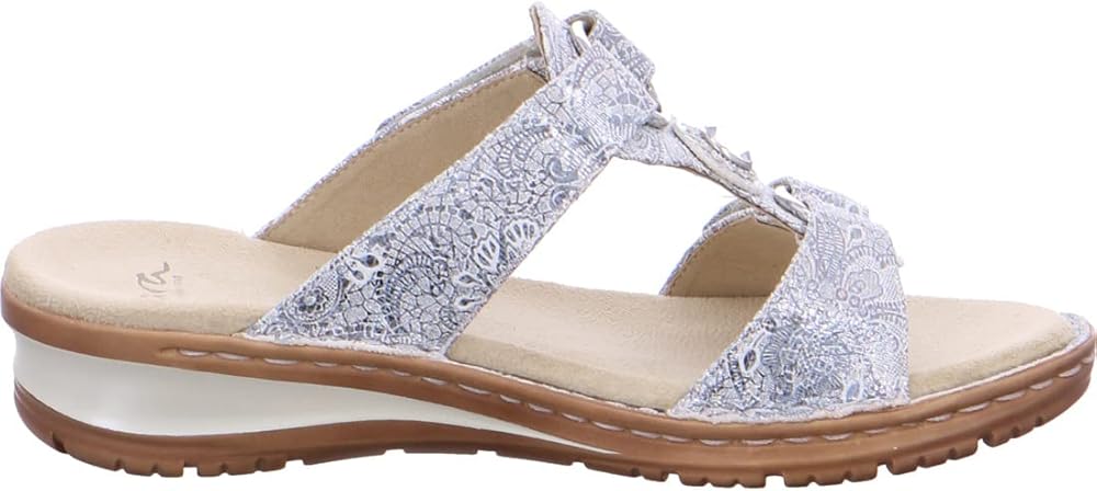 Keep it fun and simple in these classic strappy sandals on a cork footbed by ara. The felipa by ara features a classic look is fun vibrant trendy materials.The footbed featured high soft technology as well as built in arch and metatarsal support. With high soft technology, ara has married the feeling of your most comfortable athletic shoes with its pumps, flats and other categories of footwear. Super soft uppers, a highly flexible outsole, A supple and padded insole and a special foam insert hidden under the ball of the foot combine to create an indescribably comfortable walking experience.