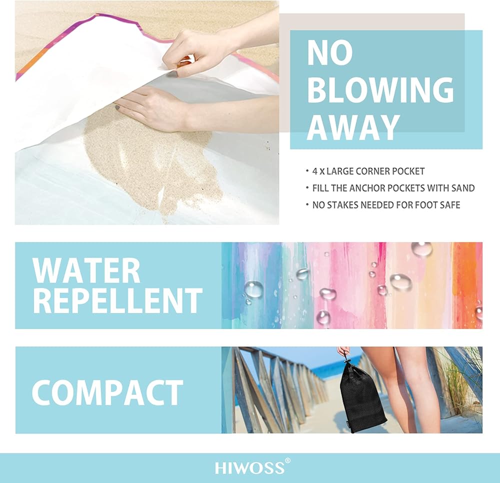 🌊【UNIQUE DESIGN, 4 CORNER POCKETS】The eye-catching designed beach blanket, with quality in appearance, will make you stand out on the beach! You can easily find your family and friends on the beach without worrying about getting lost. At the same time, the beach mat is designed with four built-in corner pockets that prevent the blanket from blowing away.