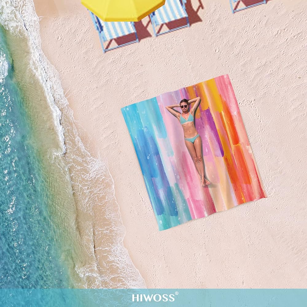 Sand Proof Beach Blanket,Waterproof Sand Free Beach Mat Large 71"x 60" with Corner Pockets,Portable Mesh Bag for Beach Festival,Picnic,Travel and Outdoor Camping,Rainbow Watercolor Painting