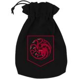 The color theme for this dice bag features a black background with a white-colored print on the front.