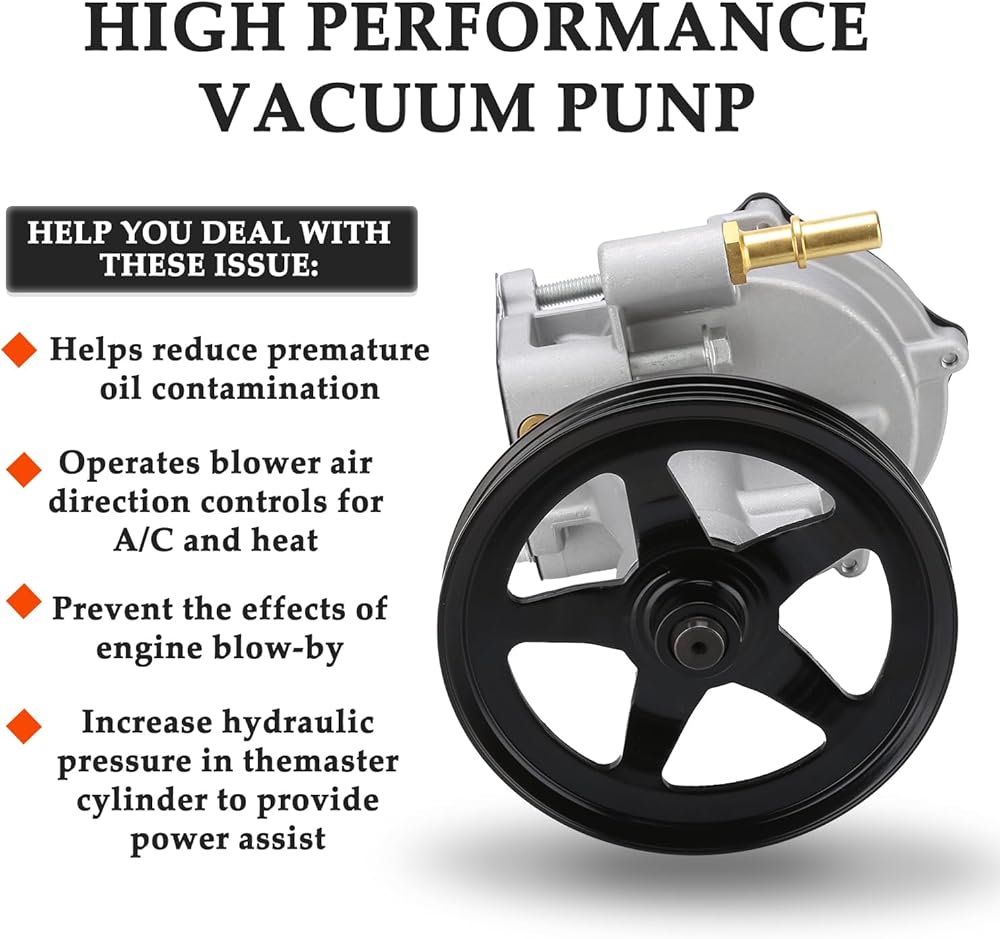 【Premium Performance】Vacuum pump can operates blower air direction controls for A/C and heat. Helps prevent engine blow-by and minimize premature oil contamination, it ensures optimal engine performance and longevity.