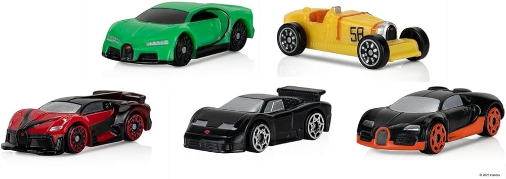 NEW World Pack - Bugatti Track Day Roll out the red carpet with the Micro Machines Bugatti Track Day Pack. Featuring three vintage and two new Bugatti sports cars, this fashionable five pack was made to win best in show. Ride down the runway with a Bugatti Chiron, Bugatti Veyron, 2019 Bugatti Divo, 1992 Bugatti EB110, and a 1928 Bugatti Type 35 Targa Florio. Each 1.75-inch car is authentically scaled to its real-life model and compatible with all Micro Machines playsets. Collect the Bugatti Track Day Pack and celebrate the art of racing. Official Micro Machines product licensed from Hasbro. Ages 4+ Includes (1) 1.75-Inch Bugatti Chiron Vehicle (#0367) (1) 1.75-Inch 2019 Bugatti Divo Vehicle (#0368) (1) 1.75-Inch 1992 Bugatti EB110 Vehicle (#0369) (1) 1.75-Inch Bugatti Veyron Vehicle (#0370) (1) 1.75-Inch 1928 Bugatti Type 35 Targa Florio Vehicle (#0371)