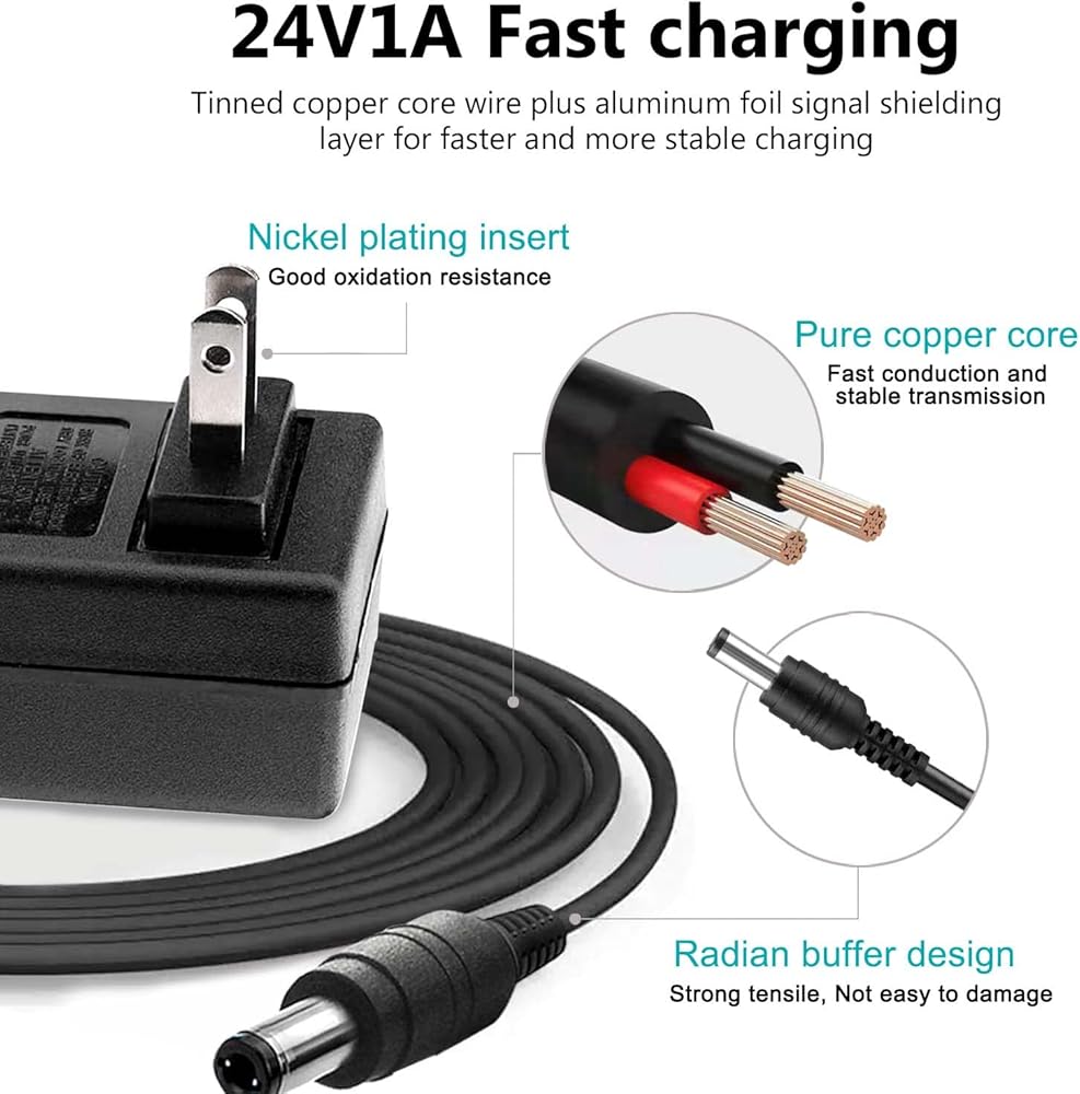 3.[مقدمة المنتج] تيار خرج شاحن الطاقة: 24V1A (سيضبط تيار الإخراج وفقًا للأجهزة المختلفة، مواصفات مصدر الطاقة: نطاق فولت الإدخال: AC100-240V 50/60 هرتز، الإخراج: تيار مستمر 24V1A، لذلك فهو بديل للجميع إمدادات الطاقة 24V-1A.