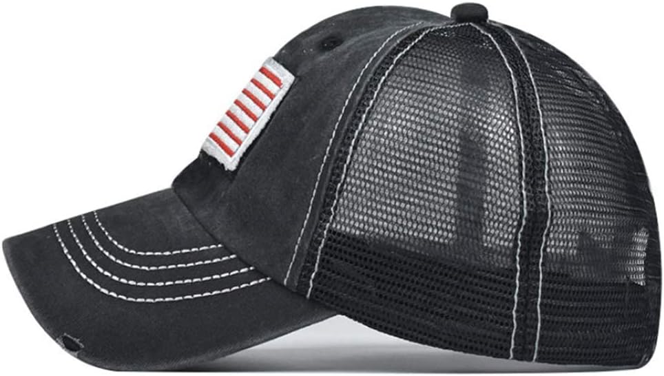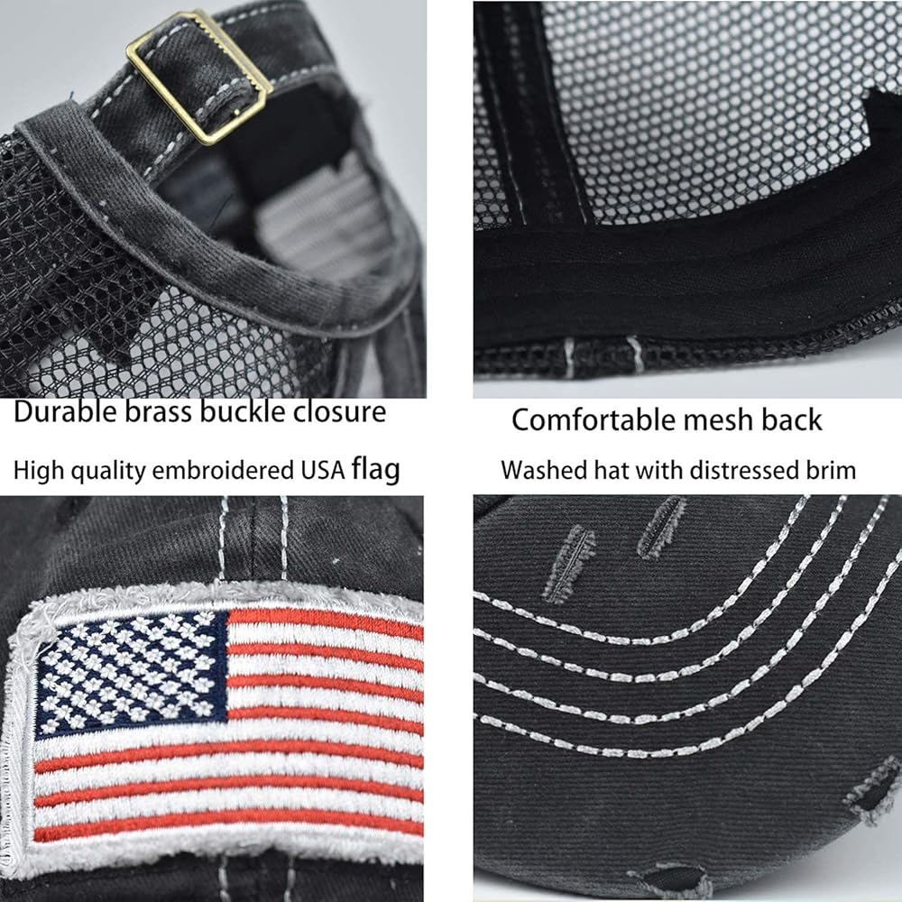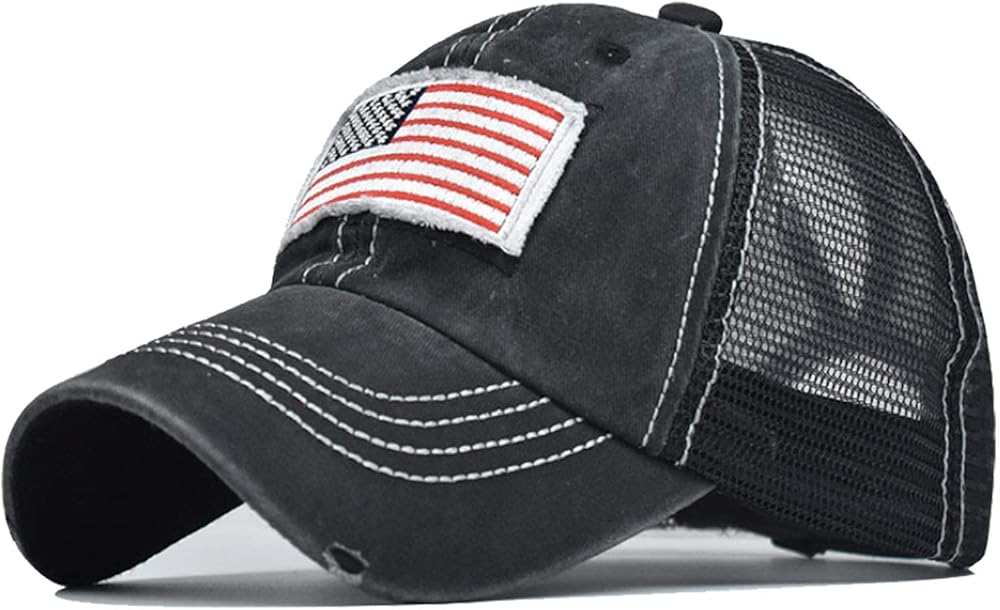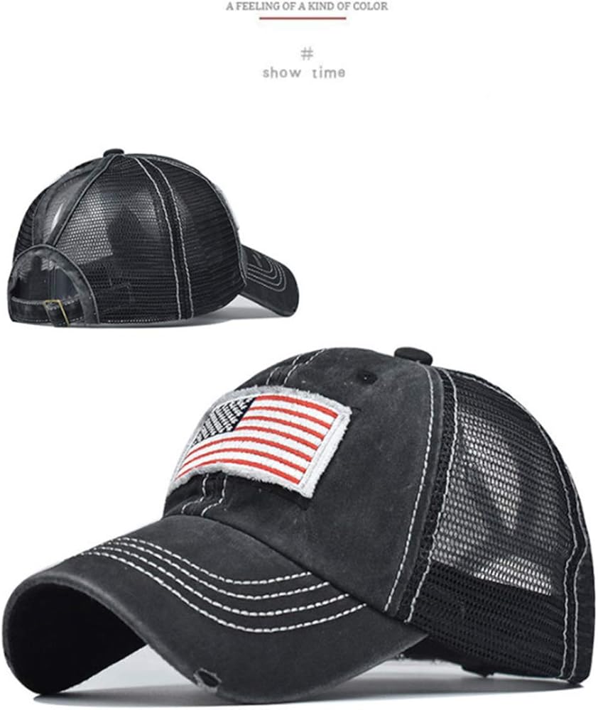 Design: 2 embroidered eyelets and 2 rows stitching on the front and mesh back feel comfortable all the day long. High quality embroidered USA flag on the front .