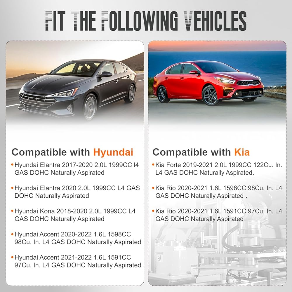 • تركيب السيارة: متوافق مع Hyundai Elantra 2.0L 2017-2020، Kona 2.0L 2018-2020، Accent 1.6L 2020-2022؛ متوافق مع كيا فورتي 2.0 لتر 2019-2021، ريو 1.6 لتر 2020-2021.
