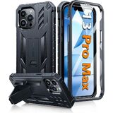 【Military Grade Protection】The rugged iPhone 13 Pro Max protective case with full coverage front frame and impact-resistant hard PC back shell with anti-slip TPU bumper provide full body protection for iPhone 13 Pro Max cellphone. It also has unique shock absorption design with grooved airbag of corners, raised edges also prevent the camera lens from scratching and collision.