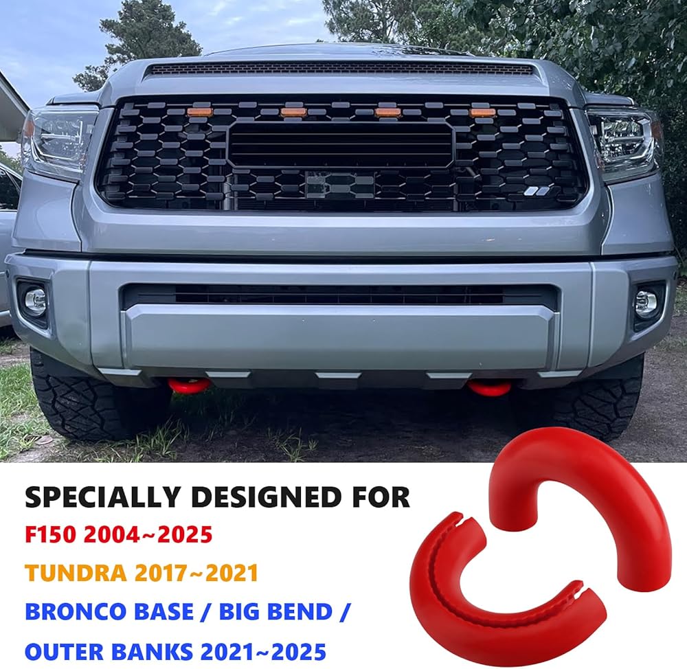• [Compatibility]:Our tow hook cover is specially designed and formed to fit for Ford F150 2004-2024, Bronco Base/Big Bend/Outer Banks 2021-2024, and Compatible with Toyota Tundra 2017-2021. A precise fit not only enhances aesthetics but also helps improve overall functionality.