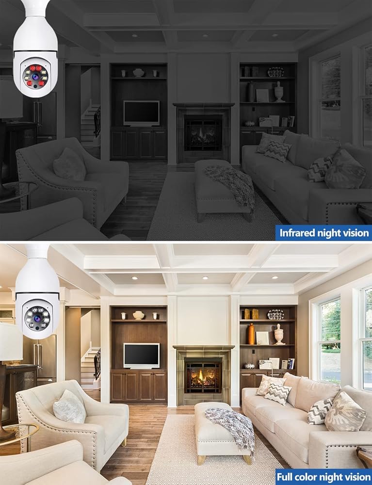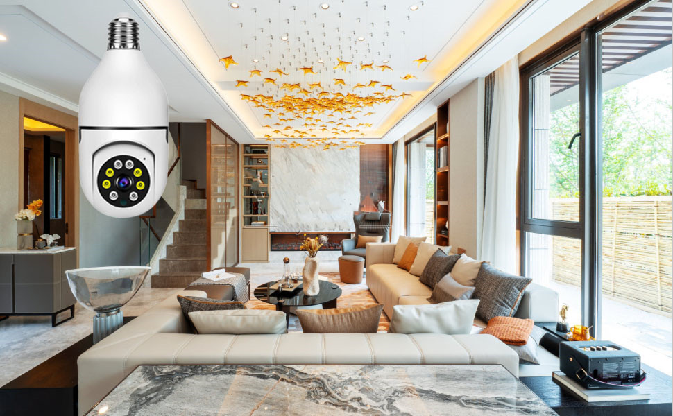 Wireless Home Security Camera: Install the bulb camera at home, you can monitor your home at your phone app.This camera can rotate 360 degree to view the whole zone.