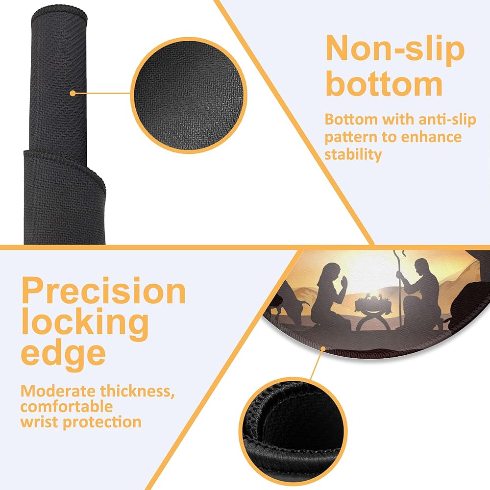 • 🖥️About The Size: This round gaming mouse pad is large enough and 3 mm thick to reduce the impact of uneven surfaces, so you don't have to worry about typing all day The bones under my hands really hurt, giving you a comfortable experience while protecting your desk, accommodating both your gaming mouse, full-size mechanical keyboard and other desktop items, keeping your desk tidy and also improving your work efficiency and feel.