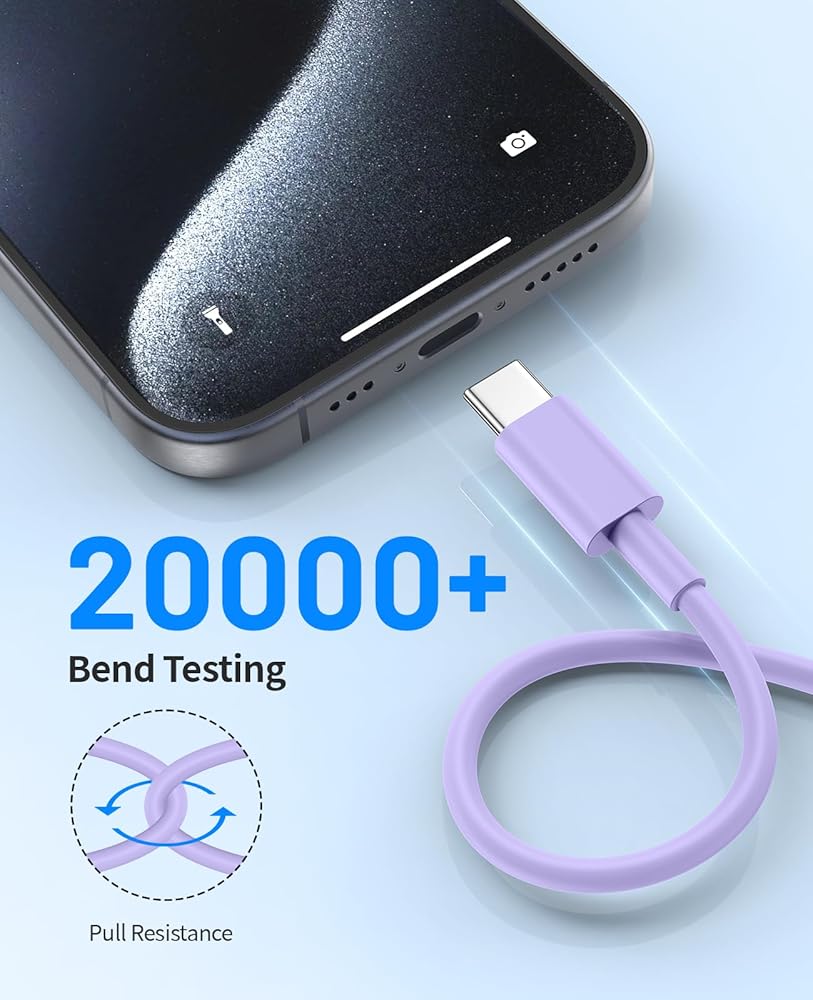 [Excellent Material]: iphone 15 usb a to usb c cable made of high-quality pc material, which adds extra durability and anti-tangle features, our products are capable of passing 20000+ bend tests.