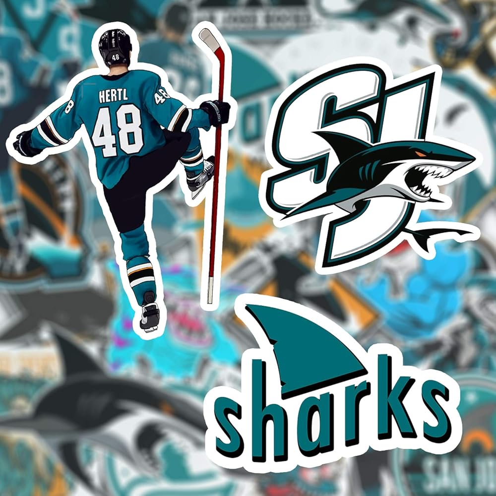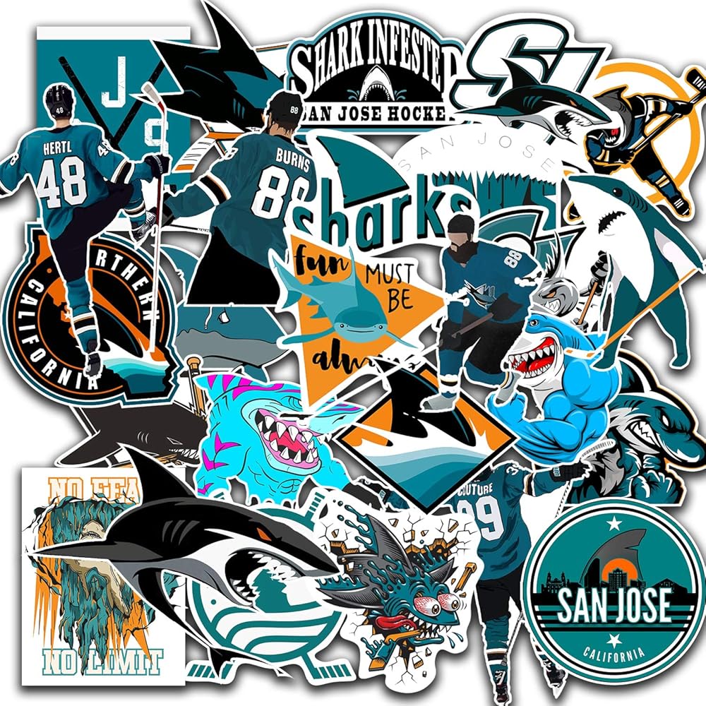 26 PCS Set of San Jose Vinyl Sharks Stickers Pack San Jose Decal Sharks 2-3 inches