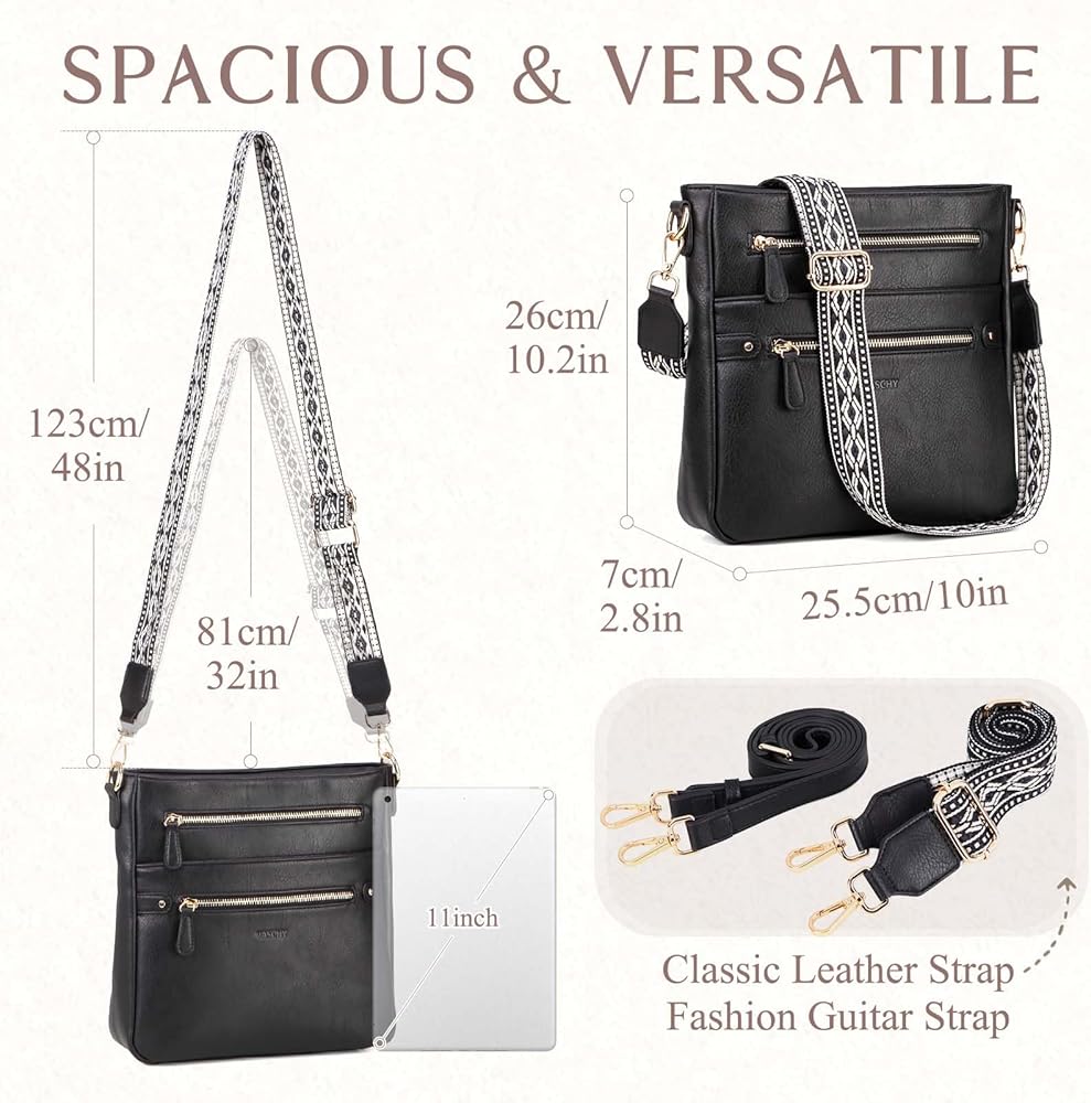 ⭐Classic Everyday Design: This ladies crossbody shoulder bag features a versatile design with two detachable straps, allowing you to switch between a classic leather strap and a vintage, adjustable guitar strap. The medium crossbody style and compact size make it a fashionable and functional accessory.